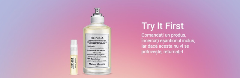 Try it First îți trimite o mostră alături de parfumul comandat, ca să poți returna produsul full-size, în cazul în care acesta nu este pe gustul tău. Apropo, returul se poate face gratuit în termen de 90 de zile, fără taxe sau justificări. O altă variantă de a testa noi produse este Discovery Box, care îți permite să achiziționezi oricare 5 mostre de pe site pentru doar 30 RON.