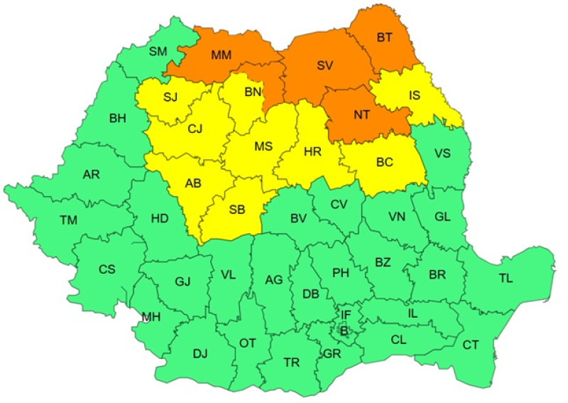În județele Maramureș, Suceava, Botoșani și Neamț, precum și în zona montană a județului BistrițaNăsăud vor fi averse însemnate cantitativ. În intervale scurte de timp sau prin acumulare, cantitățile de apă vor fi de 40...50 l/mp și izolat de peste 60 l/mp, informează ANM.