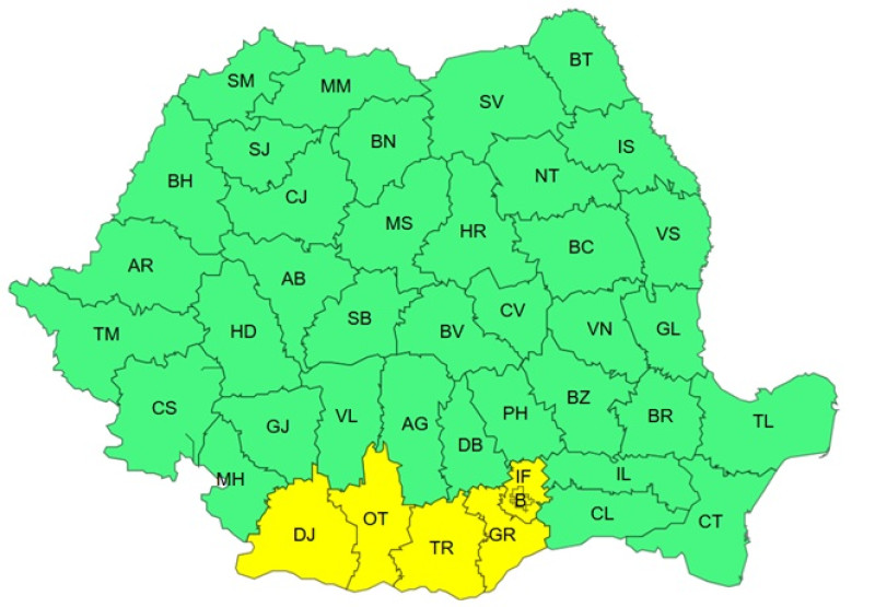 A fost emis și un cod galben de instabilitate atmosferică valabil începând de duminică de la ora 12 până seara la 21.