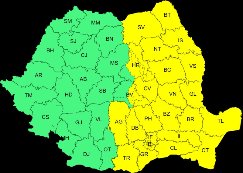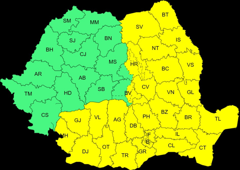 Un alt Cod galben, de data aceasta de intensificări ale vântului şi ninsori viscolite, va fi în vigoare în perioada 1 februarie, ora 14:00 - 2 februarie, ora 10:00, în sudul Olteniei, al Munteniei şi Dobrogei, unde temporar va ninge, iar local se va depune un strat de zăpadă de 6 - 10 cm (echivalentul în apă de 10 l/mp).