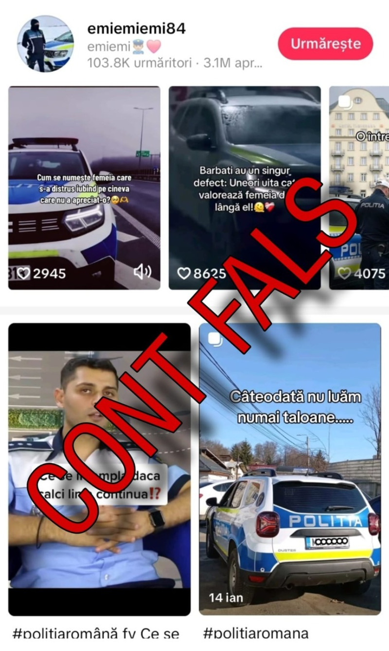 „Vă informăm asupra existenţei unui ecosistem de conturi false pe reţeaua de socializare TikTok, conturi care sunt prezentate ca fiind ale unor agenţi sau ofiţeri de poliţie sau chiar ca fiind pagini oficiale ale MAI sau structurilor din minister. Postările de pe aceste conturi sunt special concepute pentru a induce în eroare cetăţenii şi pentru a aduce prejudiciu de imagine Ministerului Afacerilor Interne şi angajaţilor instituţiei noastre”, arată reprezentanţii MAI, potrivit News.ro.