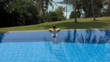 Înainte să intre în piscină, bărbatul s-a certat cu oamenii de pe margine și i-a smuls unei fete brățara de pe mână (n.r brățara de intrare la piscină). Polițiștii au apelat la ajutorul unui ofițer care vorbea poloneză și a colegului de cameră al bărbatului pentru a-l calma, fără niciun rezultat.