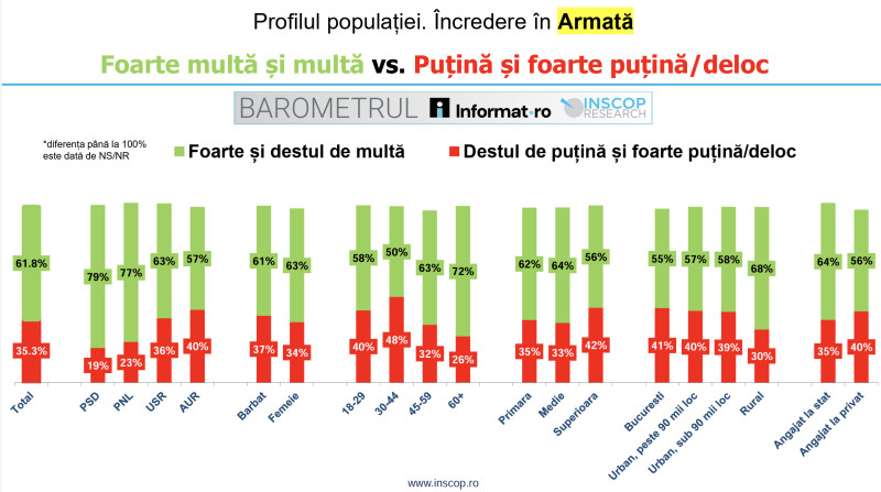 Votanţii PSD şi PNL, persoanele de peste 60 de ani, locuitorii din mediul rural sunt categoriile care au cea mai multă încredere în Armată.