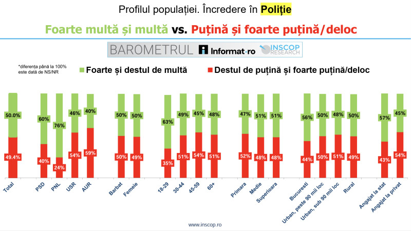 Au încredere în Poliţie mai ales: votanţii PSD şi PNL, tinerii sub 30 de ani, angajaţii la stat.