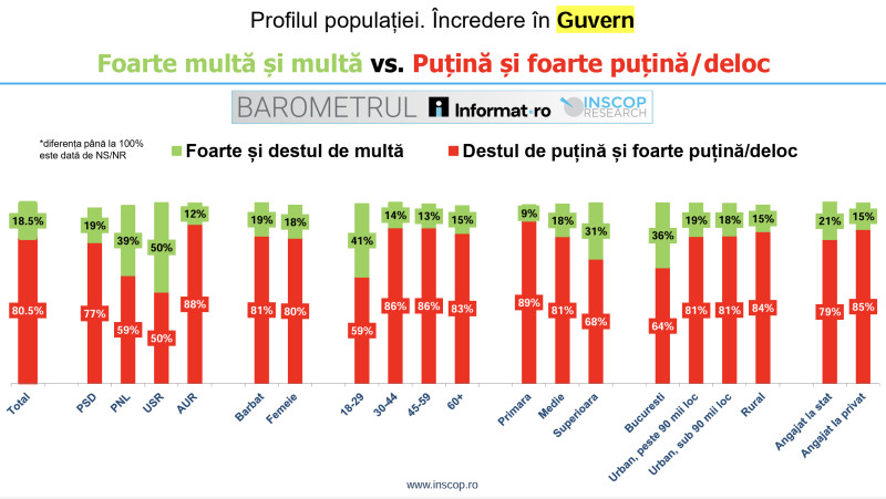 Au încredere în Guvern în special: votanţii USR şi PNL, tinerii sub 30 de ani, persoanele cu educaţie superioară, locuitorii din Bucureşti. Votanţii PSD, PNL şi USR, tinerii sub 30 de ani, locuitorii din Bucureşti au încredere în Parlament în proporţii mai ridicate decât restul populaţiei.