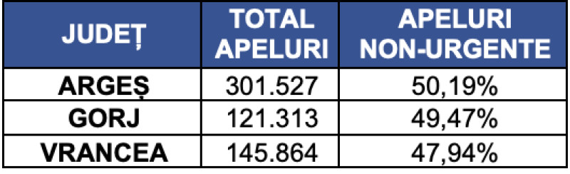 În același timp, datele indică menținerea unui nivel mai ridicat al apelurilor nejustificate în următoarele județe: